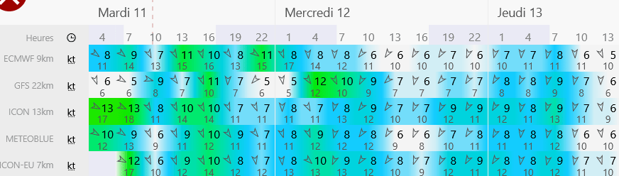 - Pour la navigation côtière, les modèles régionaux (comme AROME en France) offrent une meilleure précision grâce à une maille plus fine (Résolution : 0,025° et 0,01°).