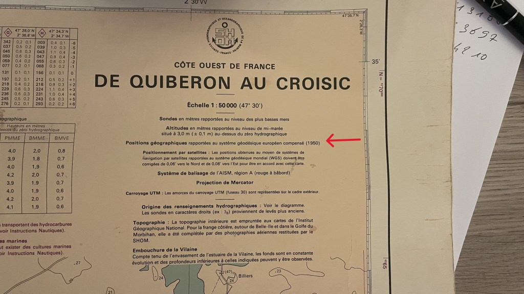 Tout d’abord, il faut utiliser le même référentiel entre le GPS (GNSS) et la carte, le ‘datum’. Aujourd’hui, le système WGS84 est très souvent utilisé pour nos applications. Mais regardez bien vos cartes papier, certaines sont encore référencées en ED50 ou un autre référentiel. L’écart entre WGS84 et ED50 est d’environ 150 mètres, avec des variations possibles selon la localisation géographique.