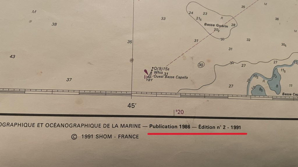 Il va sans dire que plus les cartes sont anciennes, plus l’incertitude dans les sondes et la localisation des dangers est grande. Cette localisation étant effectivement faite avec les moyens de l’époque.