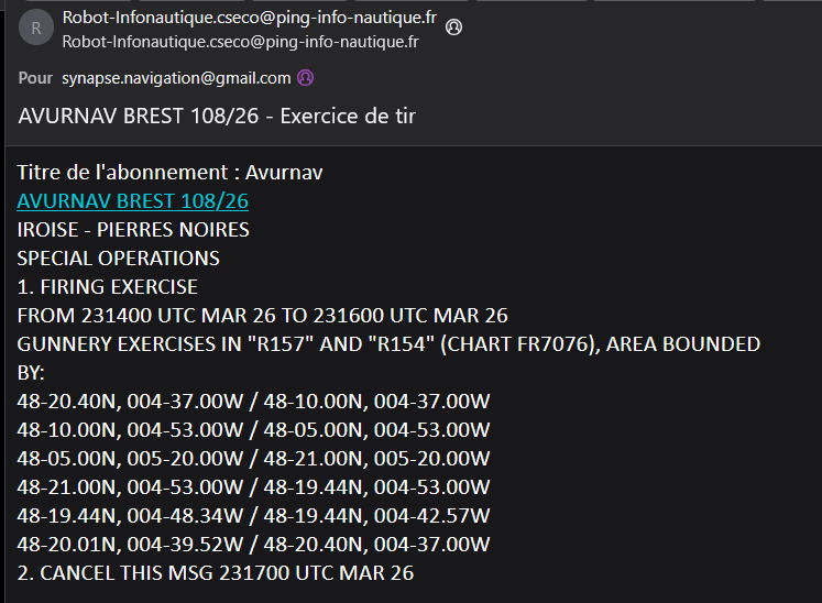 Exemple d’AVURNAV reçu par email via la plateforme ‘ping’ du SHOM :
