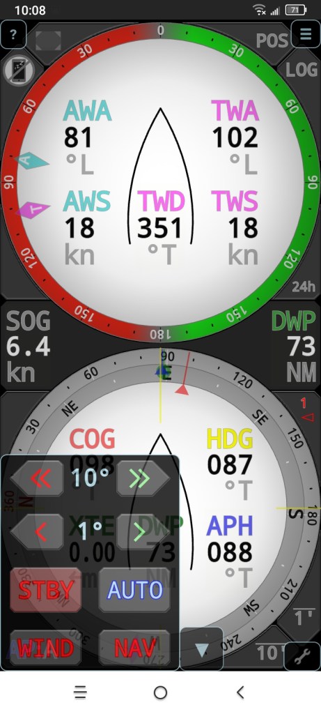 Instruments avec contrôleur de pilote automatique, affichage des waypoints, des laylines, des cibles AIS, etc …