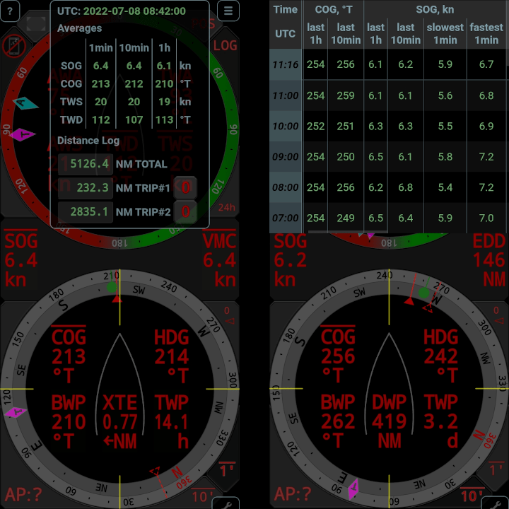 - Calcul des moyennes 1min/10min/60min pour TWD, TWS, COG, SOG et VMC