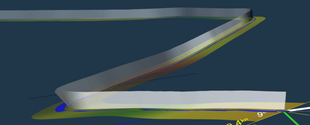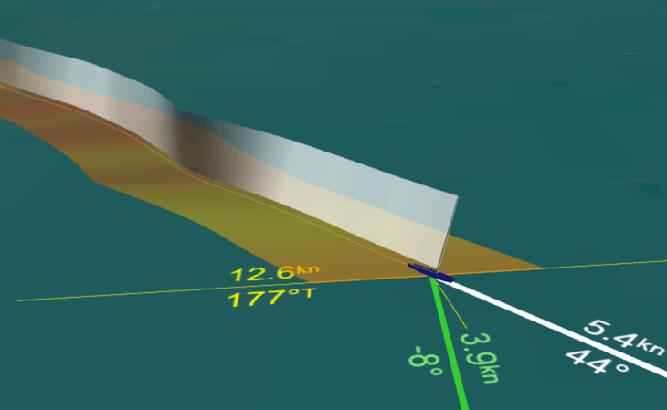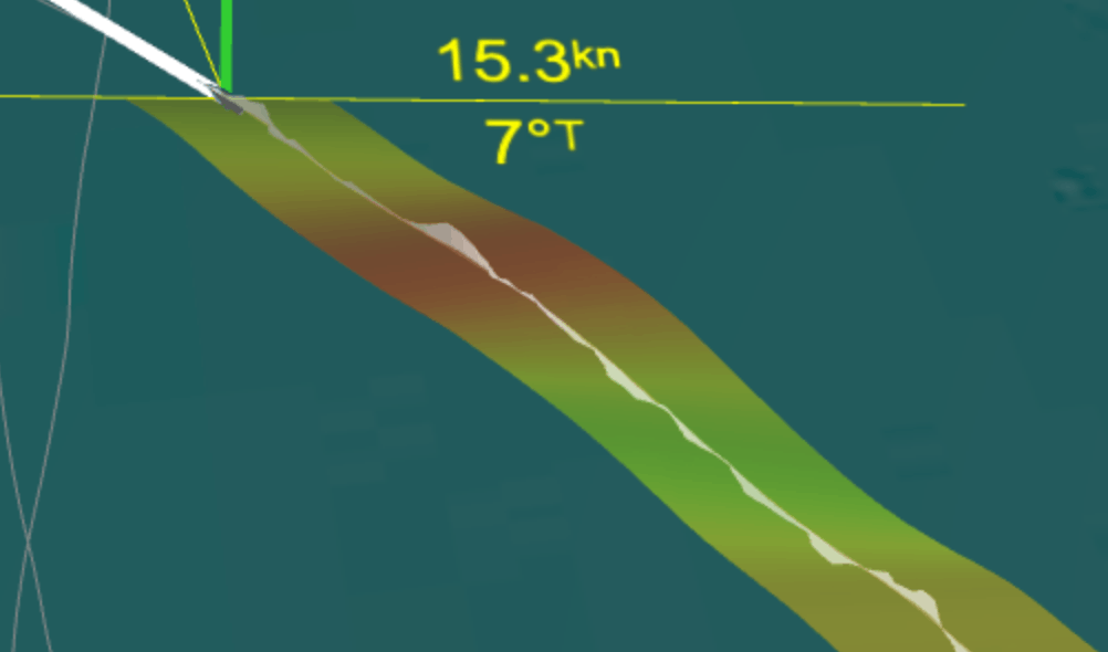 Ruban ‘vertical’ : angle de gite et visualisation de la vitesse du bateau (clair vitesse élevée, foncé ralentissement)